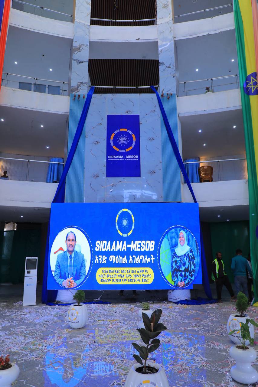ሲዳማ ኮንስትራክሽን ሥራዎች ኮርፖሬሽን በተቋራጭነት የተሳተፈበት የመሶብ የአንድ ማዕከል አገልግሎት መስጫ ማዕከል ዛሬ መስከረም 15/2018 ዓ.ም. በክልላችን ርዕስ መስተዳድር አቶ ደስታ ሌዳሞ እና በፌደራል ሥራና ክህሎት ሚኒስቴር ሚኒስትር ክብርት ወ/ሮ ሙፈሪያት ካሚል ተመርቆ ለአገልግሎት ክፍት ሆኗል።